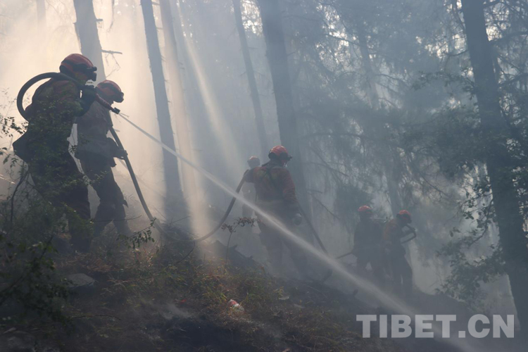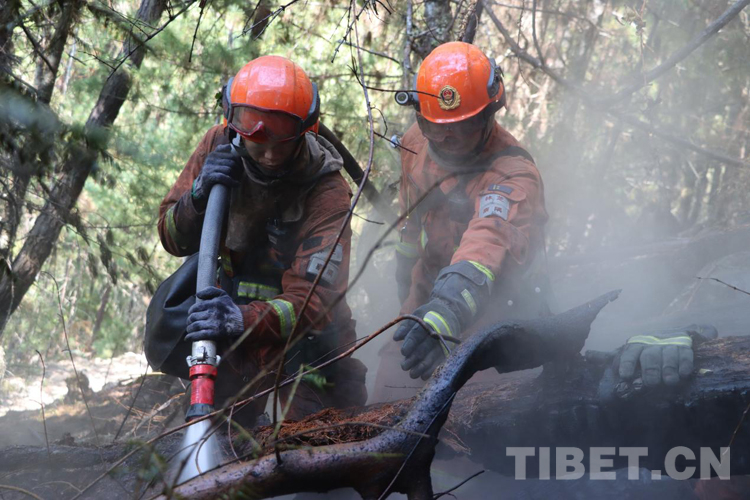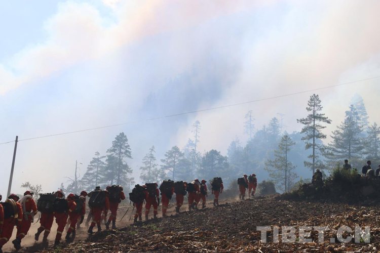 火場上,不說有感天動地的故事,但是那種“無畏火魔、不怕犧牲、舍我其誰、團結(jié)協(xié)作”的故事卻到處可見。那天,我們在接警后,第一時間趕赴現(xiàn)場,當看到一條長長的火線猶如一條蜿蜒的巨龍盤旋在空檔村山腰,火舌在大風助威下翻滾著向南側(cè)撲去時,飛哥和我各帶領(lǐng)10名黨員骨干以南北兩翼夾擊的陣勢迎戰(zhàn)火魔。在高達2800米的原始林區(qū),夜里溫度接近-5℃,槍頭手高琪已全身上下濕透并伴隨冰片的出現(xiàn),隱約透著讓人冷顫的寒光,顫抖的身體讓槍頭不斷左搖右擺,但他毅然肩扛槍頭,勇斗火魔。撲救完畢后,剛要準備休整,中隊接到殲滅山頂火點的任務,火情就是命令,指戰(zhàn)員背著沉重的裝備在近70-80度的亂石陡坡上,抓著樹枝一步步向上攀爬,16年兵齡的王建紅在爬山過程中使勁喘息,即使空氣中彌漫著飛舞的灰,也為吸取更多的氧氣保持體力;接近山頂時,一顆直徑約80cm的滾石從山頂滾落,體型弱小的二級消防士曹橋在緊促的避險哨音中采取緊急避險措施成功躲避,滾石與他擦肩而過,但危險的環(huán)境未能抑制他戰(zhàn)斗的決心。中隊指戰(zhàn)員暢談此次滅火作戰(zhàn)感受時,都紛紛笑言:“我們從海拔2300米打到了3700米,相當于從察隅到了拉薩?!?1日,中隊轉(zhuǎn)戰(zhàn)火場西南線,此時經(jīng)過5天的連續(xù)奮戰(zhàn),指戰(zhàn)員的思考能力和興奮的感覺消失殆盡,只剩下機械式行走的軀體,膝蓋有舊傷的戰(zhàn)斗班班長王明因為超負荷運動已疼痛難忍,但他在咬牙堅持。班長宋遠金、扎西歐珠主動擔當不畏艱險,從不到2300多米的地方,背著滅火裝備和滿滿的水桶,爬到4000米的山頂排除隱患,清理煙點。