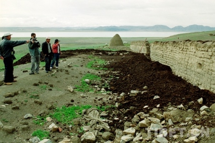 這是人們在參觀雙湖辦事處前身申扎縣加林工作組遺址,位于加林山下的俄東溝(唐召明2001年攝)