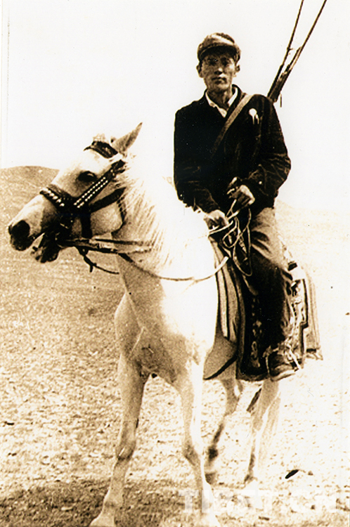 這是時任申扎縣縣長的洛桑丹珍騎馬,準(zhǔn)備走進藏北無人區(qū)考察(唐召明提供,1974年攝)