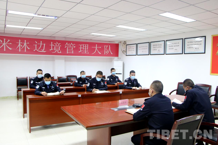 圖為米林邊境管理大隊民警專題學(xué)習(xí)黨的二十大精神報告會議 攝影:黃磊