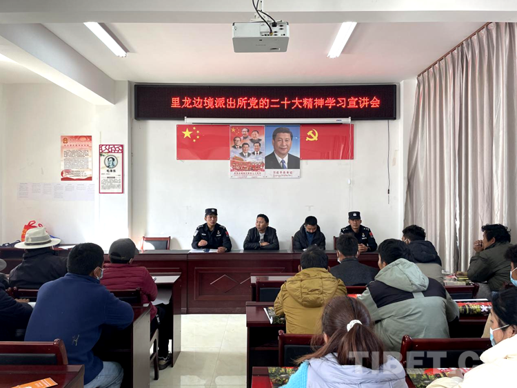 在林芝邊境管理支隊里龍邊境派出所玉松村的黨群活動中心,民警們宣講著黨的二十大報告精神熱點(diǎn),普布老人和群眾們聽著黨的“好聲音”臉上露出了燦爛的笑容。