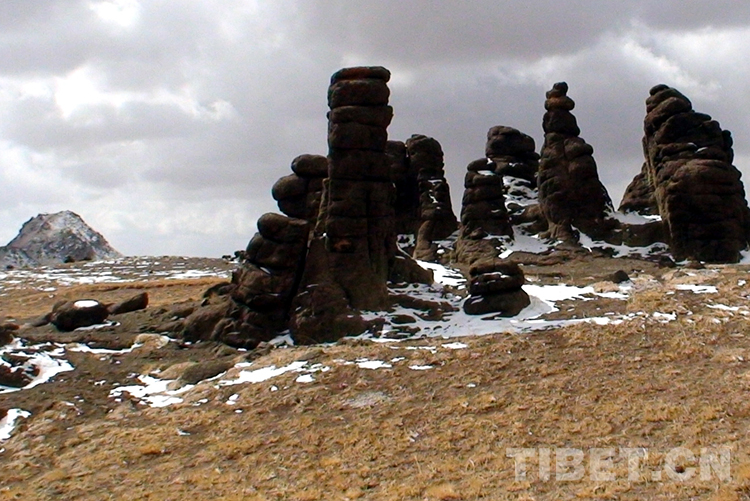 這是藏北高原榮瑪溫泉巖柱景觀(唐召明2001年攝)