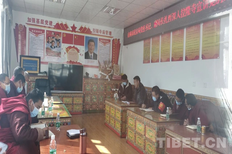 圖為洛扎縣拉隆寺僧人和駐寺干部深入學(xué)習(xí)黨的二十大精神,僧人們表示,要持續(xù)弘揚(yáng)愛(ài)國(guó)愛(ài)教優(yōu)良傳統(tǒng),自覺(jué)踐行“四條標(biāo)準(zhǔn)”,不斷增進(jìn)“五個(gè)認(rèn)同”,牢固樹(shù)立“三個(gè)意識(shí)”,堅(jiān)持藏傳佛教中國(guó)化方向,積極推動(dòng)宗教與社會(huì)主義社會(huì)相適應(yīng),堅(jiān)定不移聽(tīng)黨話、感黨恩、跟黨走。