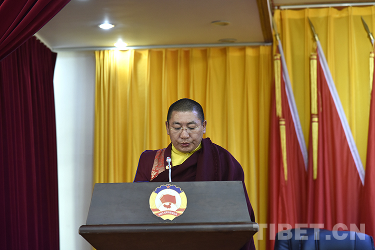 圖為12月12日,拉薩市政協(xié)十二屆三次會議第二次全體會議現(xiàn)場,宗教界委員曲仲·阿旺強(qiáng)久旦增加措發(fā)言 攝影:王媛媛