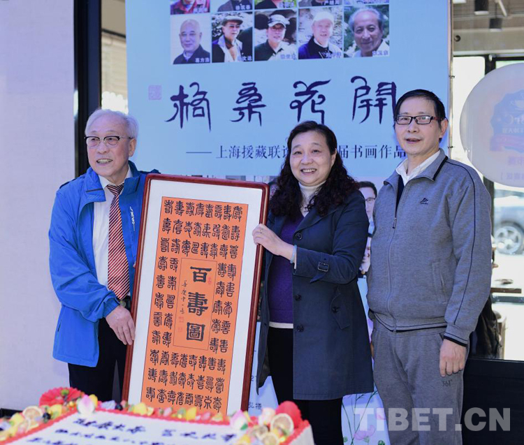開幕式當(dāng)天,恰逢張先生八十大壽,書畫展組委會特地送上蛋糕祝賀,徐匯區(qū)書畫協(xié)會也以一幅《百壽圖》向張先生表達敬意,祝他“健康長壽、藝術(shù)長青”。(中國西藏網(wǎng) 文/葛榮江)
