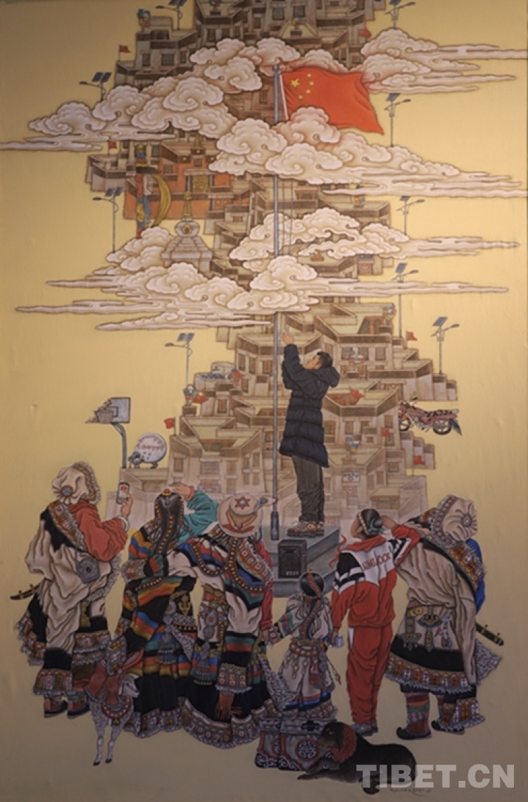 “畫家們?cè)谘永m(xù)深厚傳統(tǒng)文化,彰顯西藏唐卡繪畫高超技藝的同時(shí),不固守畫派風(fēng)格特色,用創(chuàng)新的方式聚焦偉大時(shí)代,描繪美好生活,歌頌西藏與祖國(guó)同行的盛世圖景?!蔽鞑刈灾螀^(qū)文聯(lián)副主席尹小林說(shuō)。