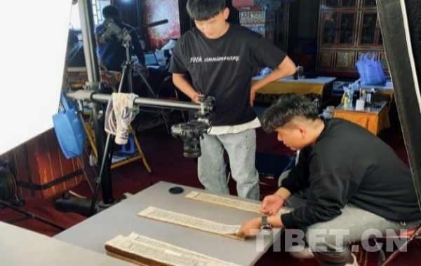 圖為2021年,西藏民族大學實習生在布達拉宮藏經(jīng)閣拍攝古籍文獻