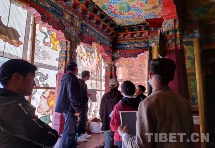 圖為2021年,西藏民族大學實習生參與檢查杰拉康寺木構(gòu)建筑的破損程度,并對設計方案提出意見