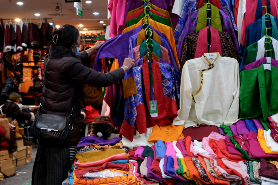 圖為藏歷新年前,正在選購(gòu)藏裝的市民 攝影:蘇洋