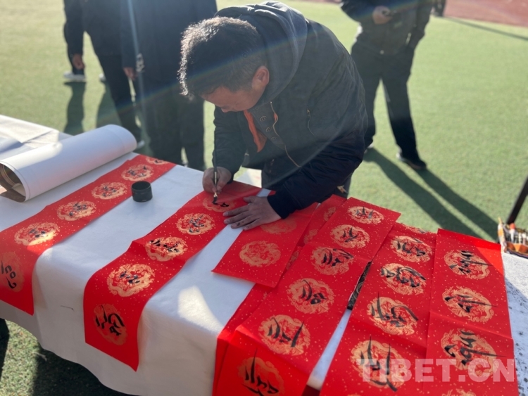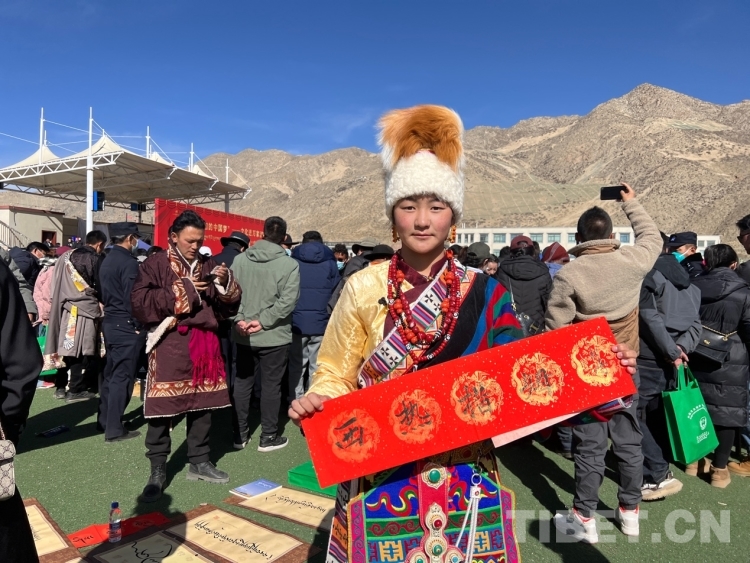 圖為書法家為群眾書寫新年祝福(書寫內(nèi)容:扎西德勒) 攝影:德吉卓瑪