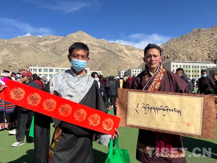 圖為群眾拿到寫有“幸福家庭”字樣的書法作品 攝影:德吉卓瑪