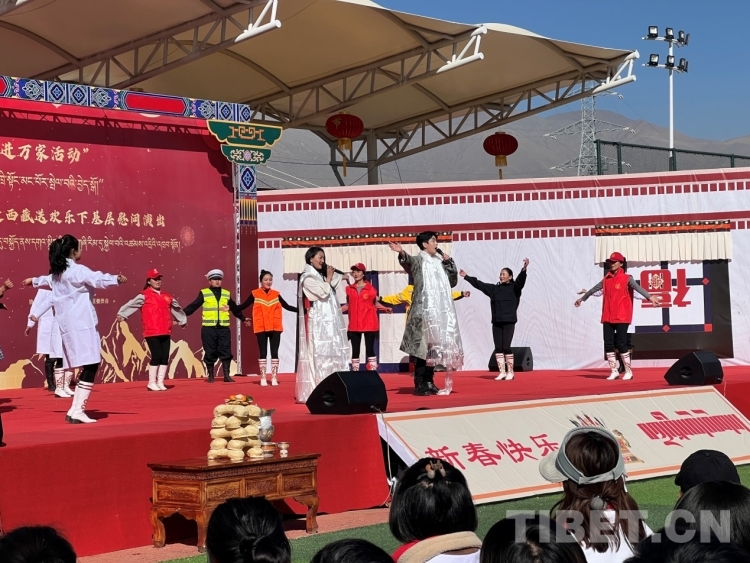 中國西藏網訊 正值早春二月,藏歷水兔新年即將到來。2月19日上午11:30,由中國文學藝術界聯(lián)合會、中國電影家協(xié)會、西藏自治區(qū)黨委宣傳部聯(lián)合主辦的“我們的中國夢——文化進萬家”送歡樂下基層慰問演出活動在西藏自治區(qū)拉薩市堆龍德慶區(qū)濱河體育公園舉行?! ?/p>