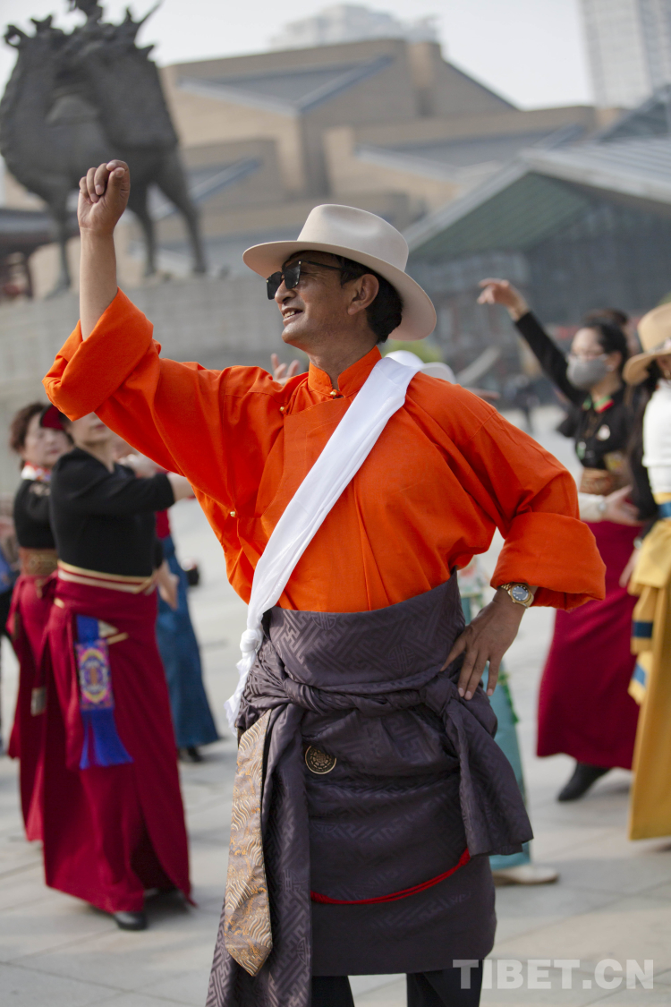 圖為大唐西市活動(dòng)現(xiàn)場(chǎng) 多杰尼瑪正在領(lǐng)舞 攝影:呂靜