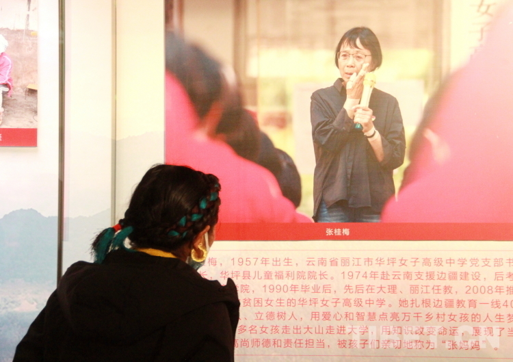 在眾多參觀展覽的人群中,有一位身著藏裝的西藏基層婦聯(lián)干部,十分醒目,她總是笑意盈盈,用手機拍攝記錄著展覽的重點,時不時與同伴分享心得。她叫索朗德吉,是來自西藏自治區(qū)林芝市工布江達縣江達鄉(xiāng)太昭村的婦聯(lián)主席,“通過觀看展覽,我系統(tǒng)了解到,百年來,我們黨始終堅持把實現(xiàn)婦女解放和發(fā)展、實現(xiàn)男女平等寫在自己奮斗的旗幟上?,F(xiàn)在的西藏,男女平等,婦女也能當(dāng)領(lǐng)導(dǎo),在工作崗位上展現(xiàn)著‘婦女能頂半邊天’的巾幗力量。這事兒如果放到舊西藏,那是想都不敢想的。”索朗德吉說,“在中國共產(chǎn)黨的領(lǐng)導(dǎo)下,我們村早已發(fā)展成為天上有航線,地面有鐵路,生活富裕的小康村,聽黨話、跟黨走是太昭人不變的信念,回去后我要把聽到的、看到的、學(xué)到的,不光講給村里人,更要講給縣里人,激發(fā)出她們的民族自豪感,共同澆灌民族團結(jié)的參天大樹。”