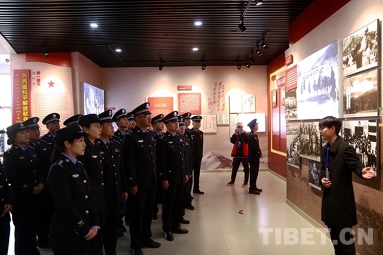 圖為西藏邊檢總站執(zhí)法調(diào)查支隊民警在烈士紀念館瞻仰烈士英雄事跡