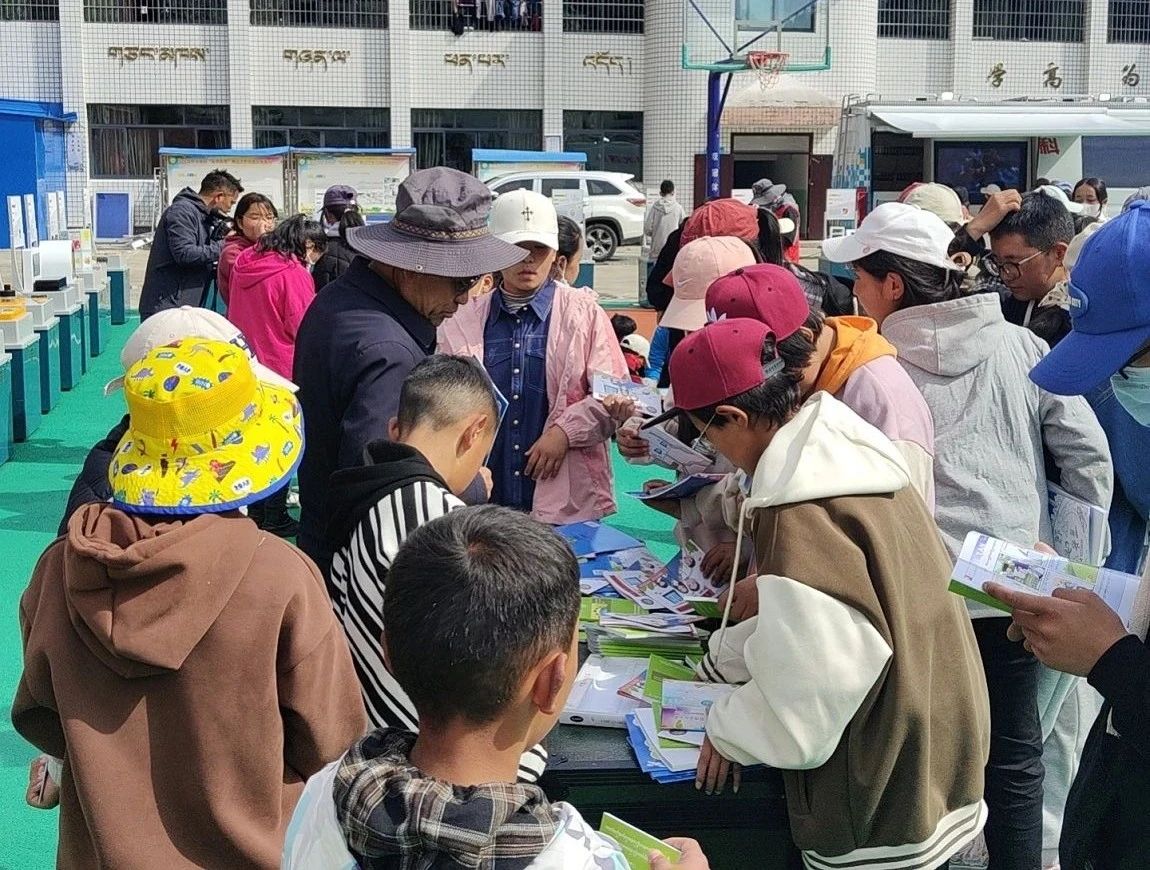圖為日喀則市科學(xué)技術(shù)協(xié)會(huì)以科普大篷車進(jìn)校園活動(dòng)為契機(jī),聯(lián)合亞東縣委宣傳部、縣科技局在縣中學(xué)舉辦的“推進(jìn)全民閱讀 共創(chuàng)書香珠峰”主題宣傳活動(dòng)現(xiàn)場(chǎng)