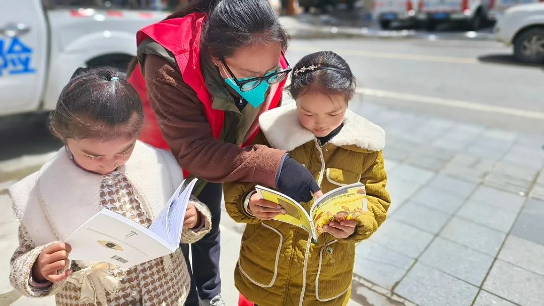 圖為亞東縣帕里鎮(zhèn)婦聯(lián)組織巾幗志愿者、派出所民警、學(xué)生代表聯(lián)合開展“閱讀勵(lì)學(xué)心 同享齊閱讀”為主題的系列活動(dòng)現(xiàn)場(chǎng)