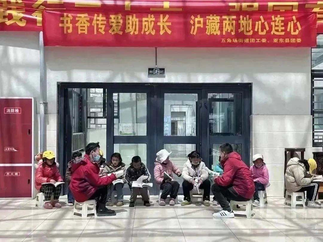 圖為亞東縣團(tuán)縣委組織西部志愿者赴堆納鄉(xiāng)小學(xué)開展“書香傳愛助成長(zhǎng),滬藏兩地心連心”校園讀書節(jié)活動(dòng)暨上海五角場(chǎng)街道團(tuán)工委公益捐書儀式現(xiàn)場(chǎng)