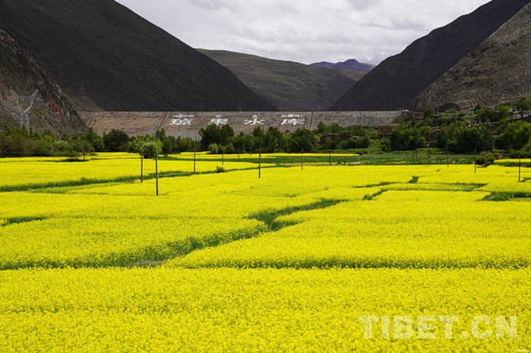 圖為瓊結縣瓊果水庫下游農(nóng)田開滿油菜花 攝影:曲杰