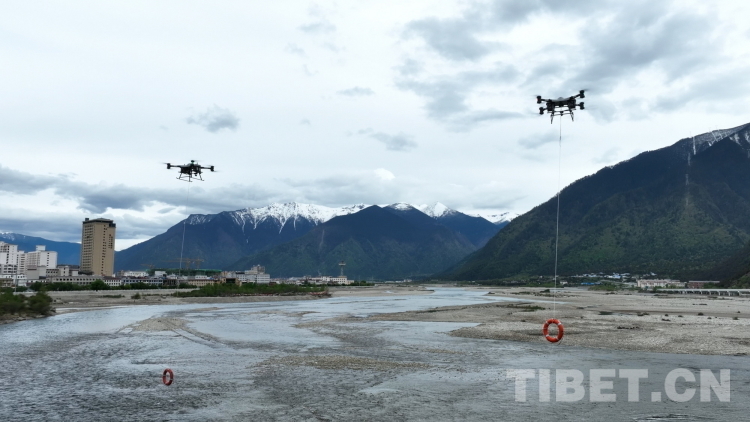 按照演習方案,此次演習包括應急響應、力量投送、地震救援處置行動、落水車輛救援行動、偏遠山區(qū)救援行動、森林火災撲救行動等內容。圖為林芝市森林消防支隊無人機在“應急使命·西藏2023”抗震救災實戰(zhàn)化演習中從空中向救援目標投送救生圈。