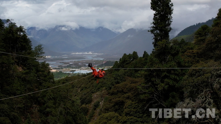 圖為林芝市森林消防支隊救援人員在“應急使命·西藏2023”抗震救災實戰(zhàn)化演習中進行橫渡救援。
