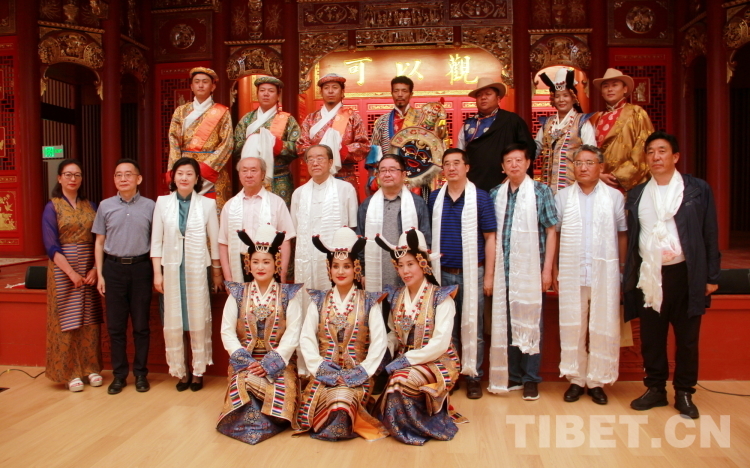 圖為西藏自治區(qū)拉薩市城關(guān)區(qū)娘熱民間藝術(shù)團的藝術(shù)家們與“戲舞雪域——多元文化視野中的藏戲藝術(shù)推廣研討會”專家合影 攝影:劉莉