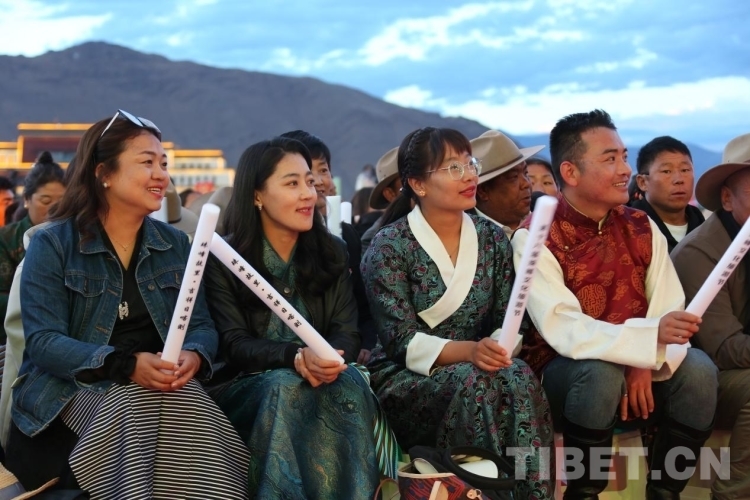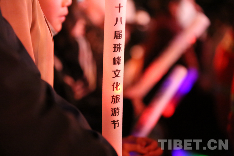 圖為現(xiàn)場觀眾揮舞手中帶有第十八屆珠峰文化藝術(shù)節(jié)字樣的熒光棒 攝影:王佳豪