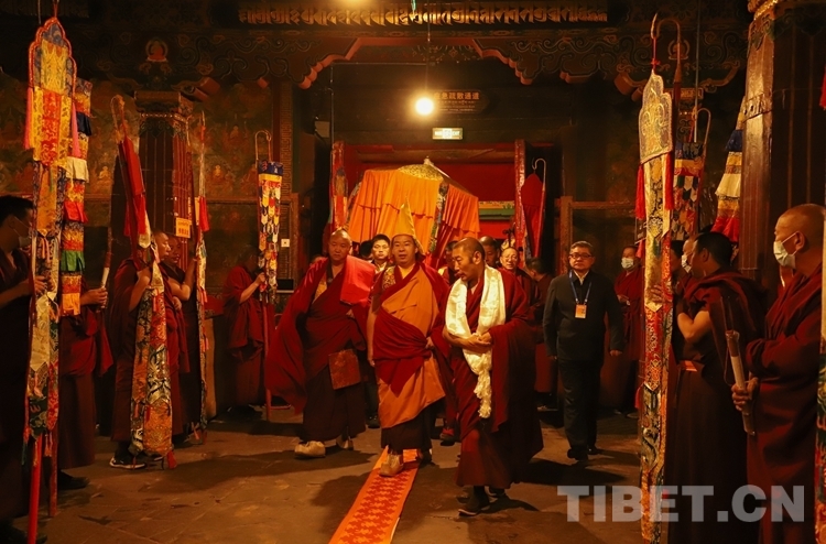 中國西藏網(wǎng)訊 6月25日凌晨,全國政協(xié)常委、中國佛教協(xié)會副會長、中國佛教協(xié)會西藏分會會長班禪額爾德尼·確吉杰布在拉薩大昭寺朝拜釋迦牟尼佛像,并為大昭寺僧眾摸頂賜福。