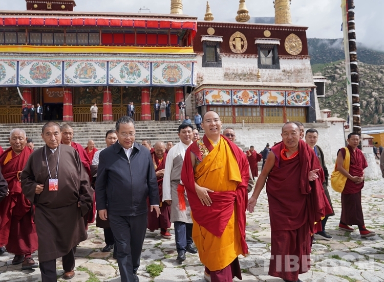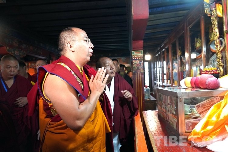 7月4日,全國(guó)政協(xié)常委、中國(guó)佛教協(xié)會(huì)副會(huì)長(zhǎng)、中國(guó)佛教協(xié)會(huì)西藏分會(huì)會(huì)長(zhǎng)班禪額爾德尼·確吉杰布來到拉薩市哲蚌寺禮佛朝拜、解經(jīng)釋教,這是班禪首次來到哲蚌寺禮佛朝拜。