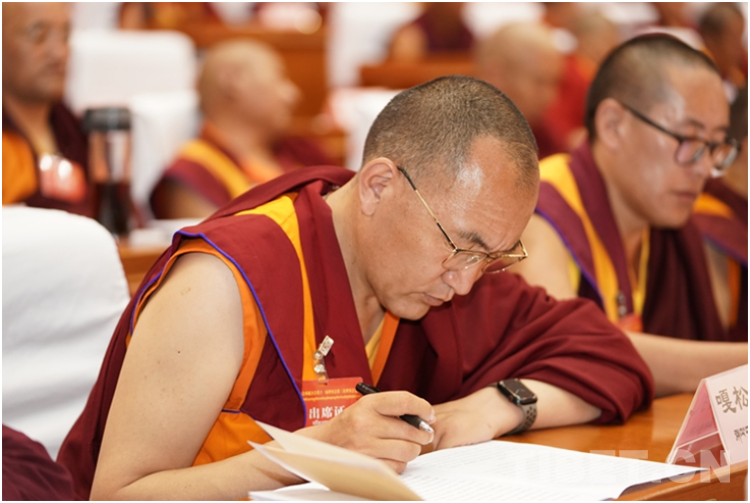 在安排部署下一步重點(diǎn)工作時(shí),班禪表示,推動(dòng)自我變革,開展教義教規(guī)闡釋。發(fā)揮藏傳佛教界人士在推進(jìn)中國(guó)化中的主體作用,推動(dòng)沿著中國(guó)化方向健康傳承,引導(dǎo)藏傳佛教界人士切實(shí)增強(qiáng)自我變革的思想和行動(dòng)自覺,以社會(huì)主義核心價(jià)值觀為引領(lǐng),在保持基本信仰、核心教義的前提下,促進(jìn)教義教規(guī)、管理制度、禮儀習(xí)俗、行為規(guī)范等方面逐步形成中國(guó)特色。實(shí)施藏傳佛教教義教規(guī)闡釋工程。引導(dǎo)藏傳佛教界對(duì)教義教規(guī)、藏傳佛教經(jīng)典選優(yōu)擇重、去粗取精、推陳出新,作出與中國(guó)國(guó)情、中華文化、中國(guó)特色社會(huì)主義相適應(yīng)的通俗易懂、與時(shí)俱進(jìn)地闡釋。引導(dǎo)藏傳佛教界人士在闡釋經(jīng)典、講經(jīng)說(shuō)法、日常生活中學(xué)習(xí)使用國(guó)家通用語(yǔ)言文字,開展經(jīng)典翻譯、選編、注釋,挖掘教義思想中積極因素。爭(zhēng)做精進(jìn)修學(xué)、推進(jìn)藏傳佛教健康傳承的好僧尼,爭(zhēng)做守法遵規(guī)、弘揚(yáng)濟(jì)世利民優(yōu)良傳統(tǒng)的好僧尼,爭(zhēng)做立場(chǎng)堅(jiān)定、堅(jiān)決維護(hù)祖國(guó)統(tǒng)一和民族團(tuán)結(jié)的好僧尼。