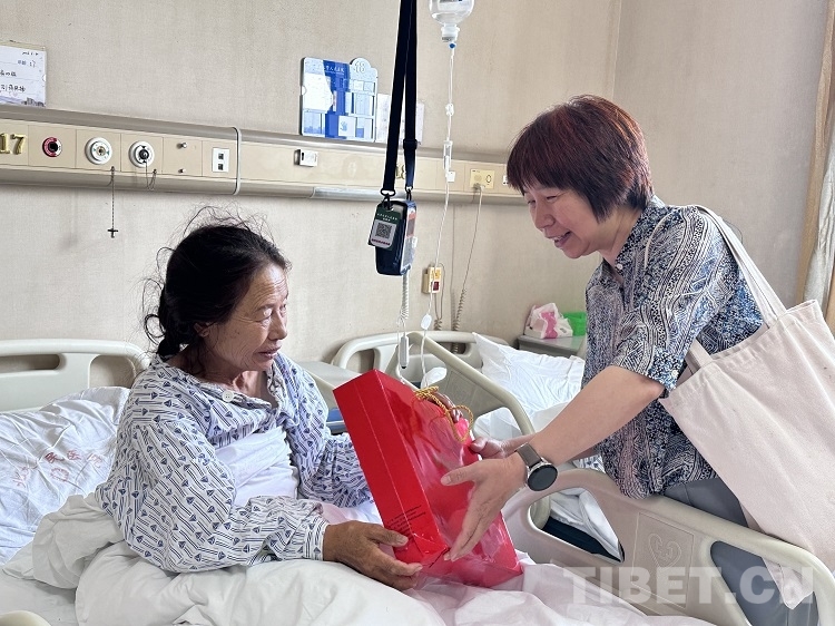 圖為中國(guó)社科院民族所副所長(zhǎng)丁賽同志看望西藏來(lái)京接受治療的患者 攝影:趙越