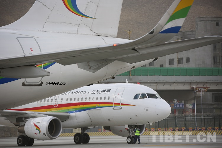 資料圖:飛機抵達拉薩貢嘎機場