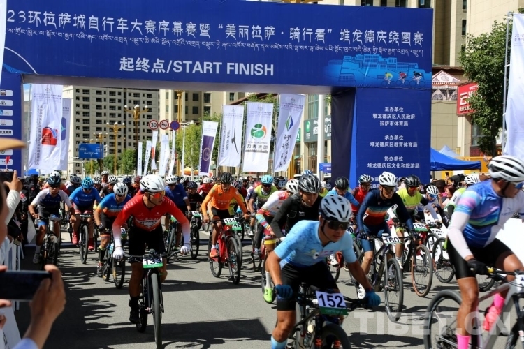 圖為2023年環(huán)拉薩自行車(chē)大賽序幕賽暨“美麗拉薩·騎行看”堆龍德慶繞圈賽鳴槍開(kāi)賽 攝影:王佳豪
