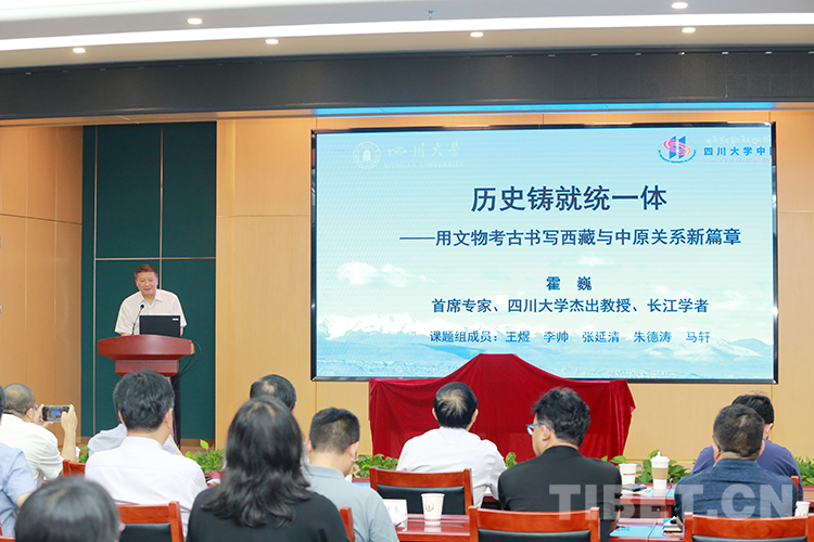 圖為《歷史鑄就統(tǒng)一體:考古與文物所見西藏和中原關(guān)系資料研究》主編霍巍發(fā)言 攝影:陳衛(wèi)國
