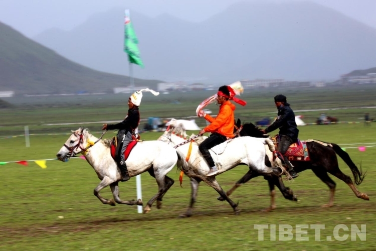 競速賽選手分為三組,分別繞場競速跑3圈(約3600米),最終以到達(dá)順序確定成績。經(jīng)初賽、決賽,最終來自貢久布鄉(xiāng)松多村桑木旦(馬主)和頓珠次仁(騎手)獲得了冠軍。