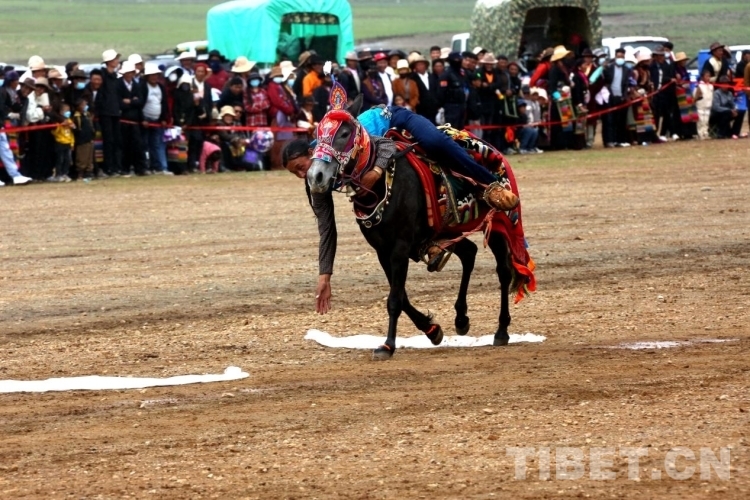 而馬術(shù)表演,則由參賽選手為現(xiàn)場觀眾表演馬上拾哈達(dá)等傳統(tǒng)馬術(shù)表演項目。