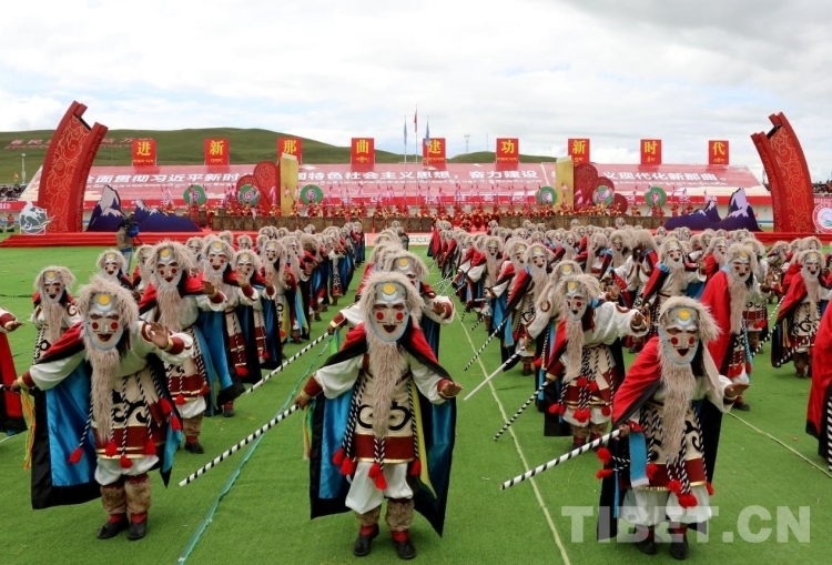 開幕式文藝演出分為《草原飛歌》《奮進(jìn)那曲》《幸福歌聲》《吉祥鍋莊》四個章節(jié)。格薩爾說唱和折嘎說唱等西藏傳統(tǒng)藝術(shù)瑰寶、“鄉(xiāng)村振興 那曲奮進(jìn)”活動中涌現(xiàn)出的優(yōu)秀文藝作品、西藏自治區(qū)內(nèi)外著名歌手歌曲連唱、那曲各族人民共跳歡快鍋莊等悉數(shù)登場,帶動開幕式現(xiàn)場氣氛到達(dá)高潮。
