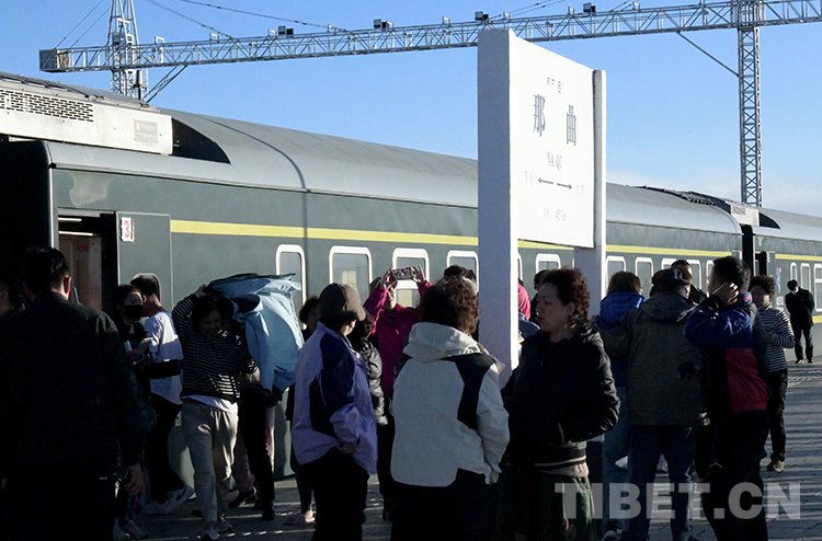 北京開往拉薩的Z21次京藏列車到達(dá)藏北首府的那曲站(唐召明2023年3月26日攝)