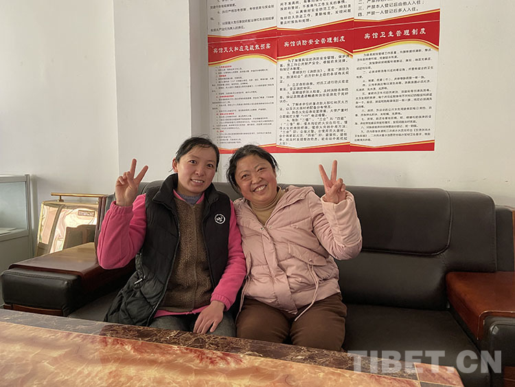 2001年,老公從格爾木坐長途汽車去拉薩。那時不是夫妻關(guān)系,卻彼此認識。他在拉薩打拼幾年,主要是酒店經(jīng)營這一塊。2006年,青藏鐵路通車那一年,她坐上火車去拉薩投親,開始在剛堅飯店打工,后來又換了幾家酒店。由于都在同一行業(yè),之前又認識,張保英與先來的他很快情感升華,成為一家人。
