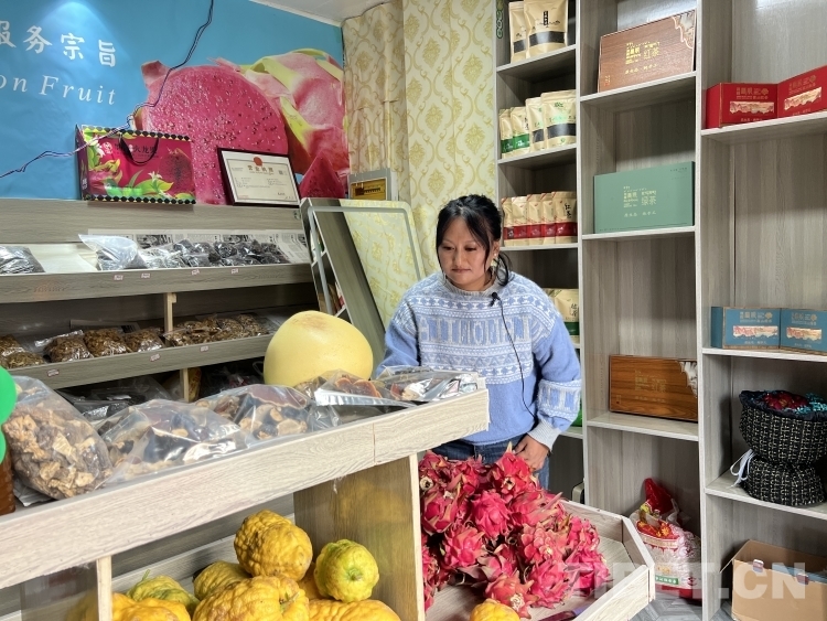 在墨脫縣德興鄉(xiāng)德興村村民西繞措姆的店里,我們看到了整齊擺放的火龍果、香蕉等熱帶水果。在整個墨脫縣,他們夫妻兩人是第一家,也是唯一一家規(guī)范種植火龍果的農(nóng)戶。“那個時候我老公剛大學(xué)畢業(yè),在短視頻上看到有人在種火龍果,他就從網(wǎng)上買了火龍果苗,自己看著視頻學(xué)習(xí)種植?!?020年夫妻兩人迎來了第一個火龍果收獲季,2022年他們獲得政府民生實事扶持大學(xué)生資金30萬元,種植規(guī)模也擴(kuò)大到了23畝。