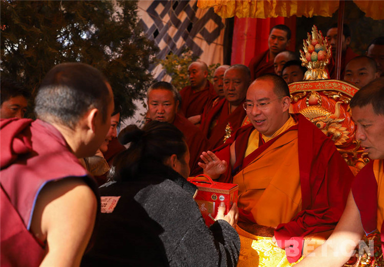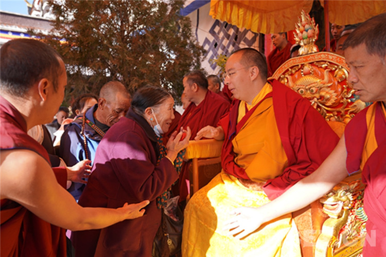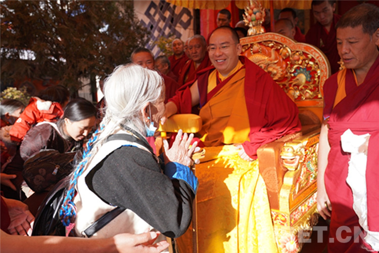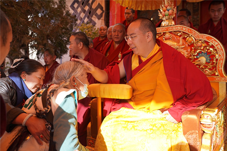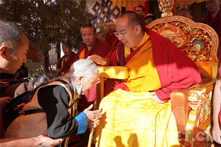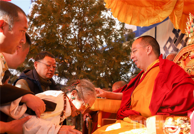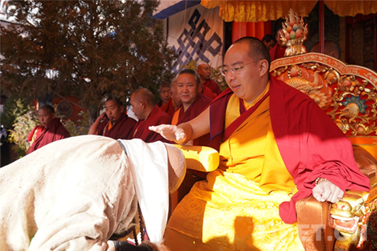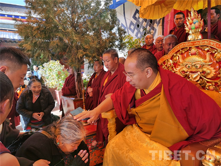 中國西藏網(wǎng)訊 11月13日至14日,全國政協(xié)常委、中國佛教協(xié)會副會長、中國佛協(xié)西藏分會會長班禪額爾德尼?確吉杰布在西藏日喀則市扎什倫布寺多加大院為信教群眾摸頂賜福,這是近年來規(guī)模最大的一次班禪摸頂賜?;顒?。圖為班禪摸頂賜福 攝影:王淑(中國西藏網(wǎng) 記者/王淑 賈華加)