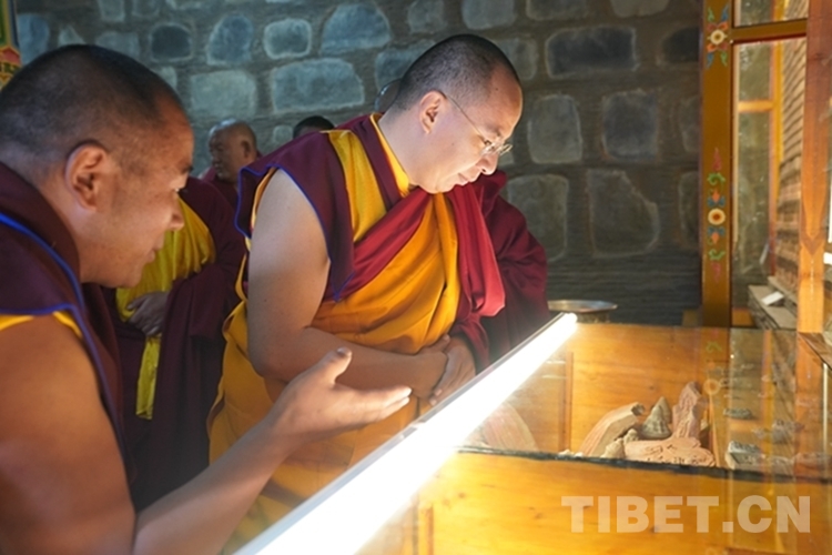 圖為班禪參觀石刻、擦擦文物陳列室 攝影:王淑