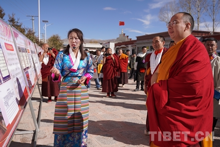 在瓊布·阿旺強(qiáng)巴堅(jiān)贊活佛引領(lǐng)下,班禪依次朝拜主殿懺悔殿、主供佛殿、度母殿、護(hù)法神殿、舊杜康殿,參觀文物陳列室,前往寺廟辯經(jīng)場觀摩僧人辯經(jīng),并就扎西吉培寺“三個(gè)意識(shí)”教育開展情況和僧人綜合考評(píng)機(jī)制有關(guān)情況進(jìn)行調(diào)研。