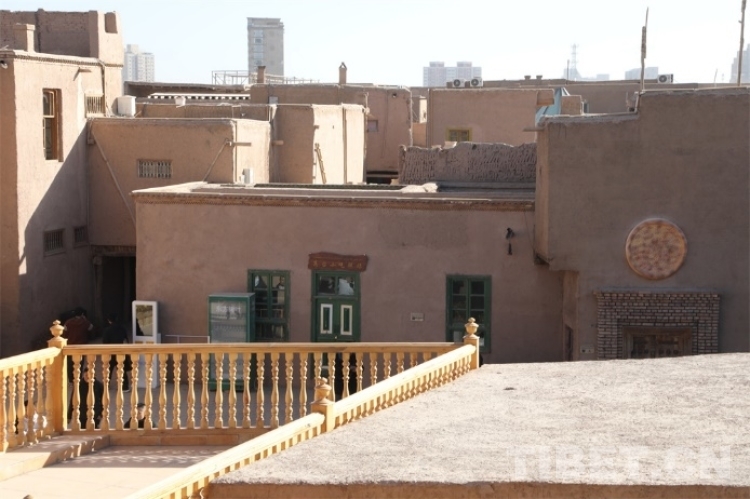 中國西藏網(wǎng)訊 在中國新疆維吾爾自治區(qū)喀什市,在繁榮熱鬧的喀什古城對面,僅一條馬路之隔,坐落著代表喀什傳統(tǒng)建筑靈魂的高臺民居。高臺民居又名闊孜其亞貝希老城區(qū),它位于吐曼河西岸一處高約30米、長寬約400米的黃土高臺上,其面積約57000平方米。“闊孜其亞貝?!庇懈哐峦撂盏囊馑?,因而高臺民居又被稱為高崖上的土陶人家。