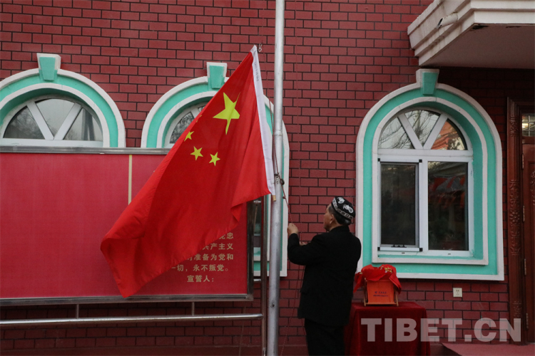 中國(guó)西藏網(wǎng)訊 日常的清晨,走在哈爾墩社區(qū)的街道上,推開(kāi)街道拐角的一處紅色大門(mén),就能看到一個(gè)平靜整潔的小院。沙勒克江·依明老人和他的老伴早早地站在小院中間,微笑著迎接走訪團(tuán)隊(duì)的到來(lái)。他們的右手邊是一根锃亮的銀色升旗桿,旗桿上已經(jīng)升起的五星紅旗在清晨的微風(fēng)里輕輕舒展開(kāi)來(lái)。
