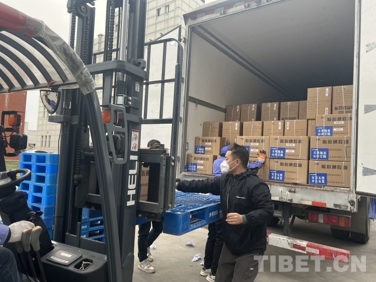圖為北京同心共鑄公益基金會調(diào)撥物資和應(yīng)急藥品即將送往災(zāi)區(qū)