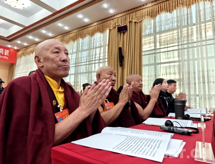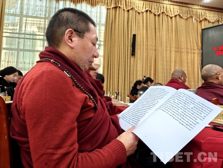 圖為政協(xié)委員認(rèn)真審閱會(huì)議資料 攝影:次旦拉姆