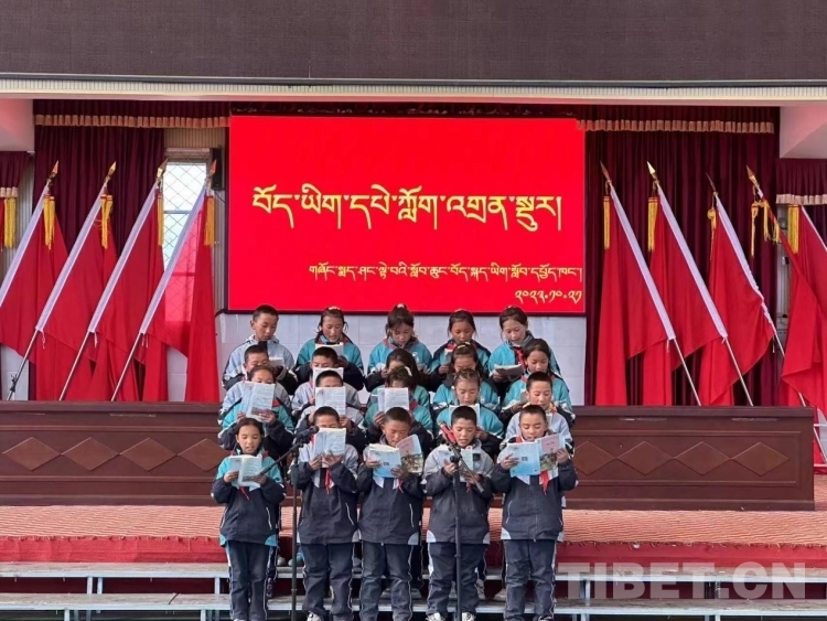 圖為雄麥鄉(xiāng)小學(xué)舉辦藏文誦讀比賽