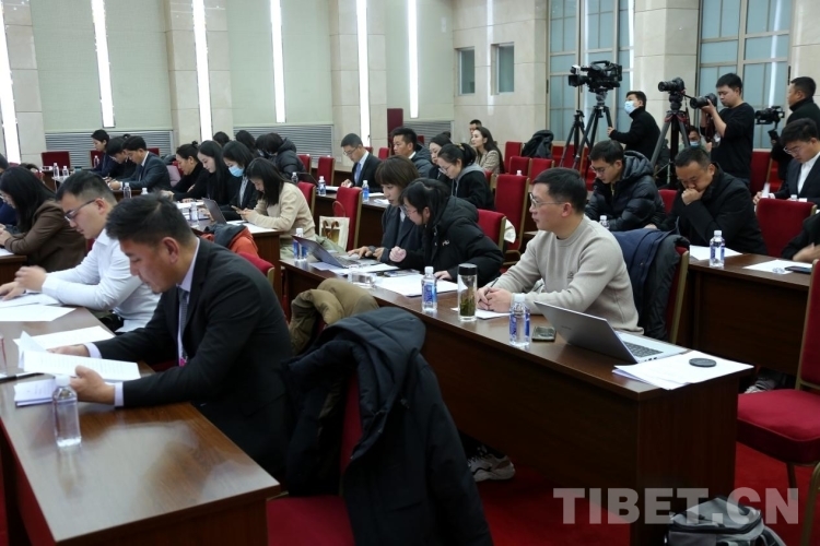 圖為中央駐藏媒體及西藏自治區(qū)媒體代表在會(huì)上認(rèn)真聽取新聞發(fā)言人通報(bào)相關(guān)情況 攝影:王佳豪