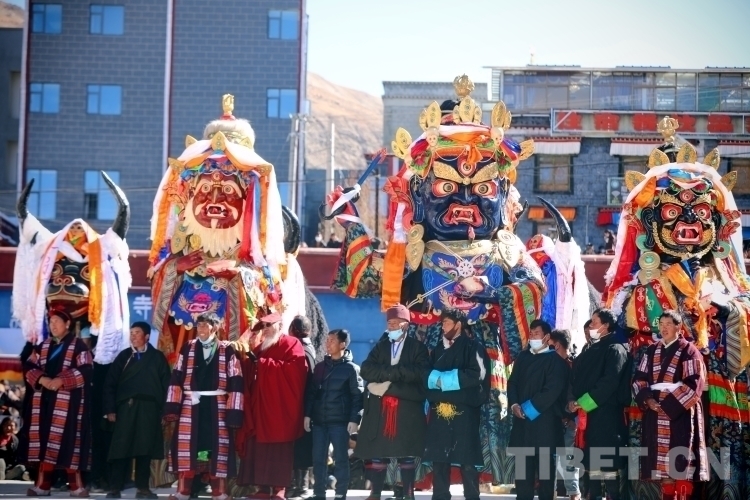 西藏薩迦寺舉行一年一度的“堆慶”宗教神舞表演